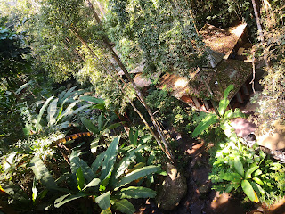 这家Teddu咖啡馆的特色就是环绕着森林,在谷底溪边还有小瀑布,是非常清幽的咖啡馆。更吸引我的地方,是出去的路线,是要经过一段差不多50米长的高空吊桥。这是什么的一个概念,可以有如此“原始”和天然的咖啡馆。如果进去没有喝咖啡要走吊桥,是需要自费100泰铢,如果叫一杯饮料就可以走一次吊桥的机会。